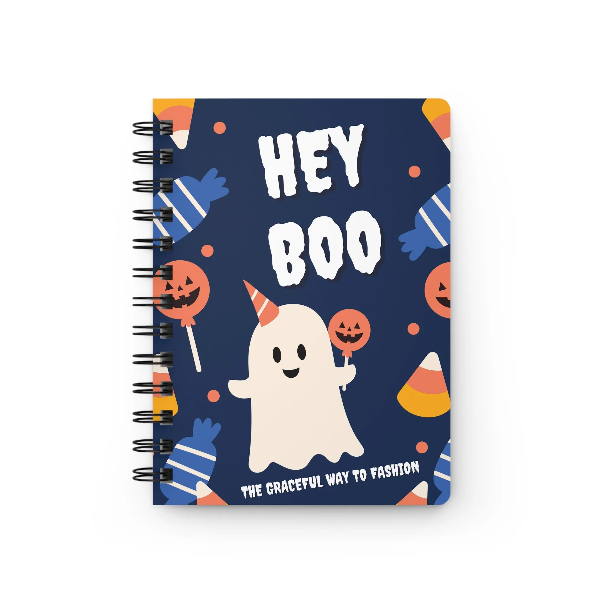 Halloween Ghost Spiral Bound Travel Journal - Cute Hey Boo Design, Perfect for Spooky Season, Note-taking, Gifts, Creative Writing, Planning