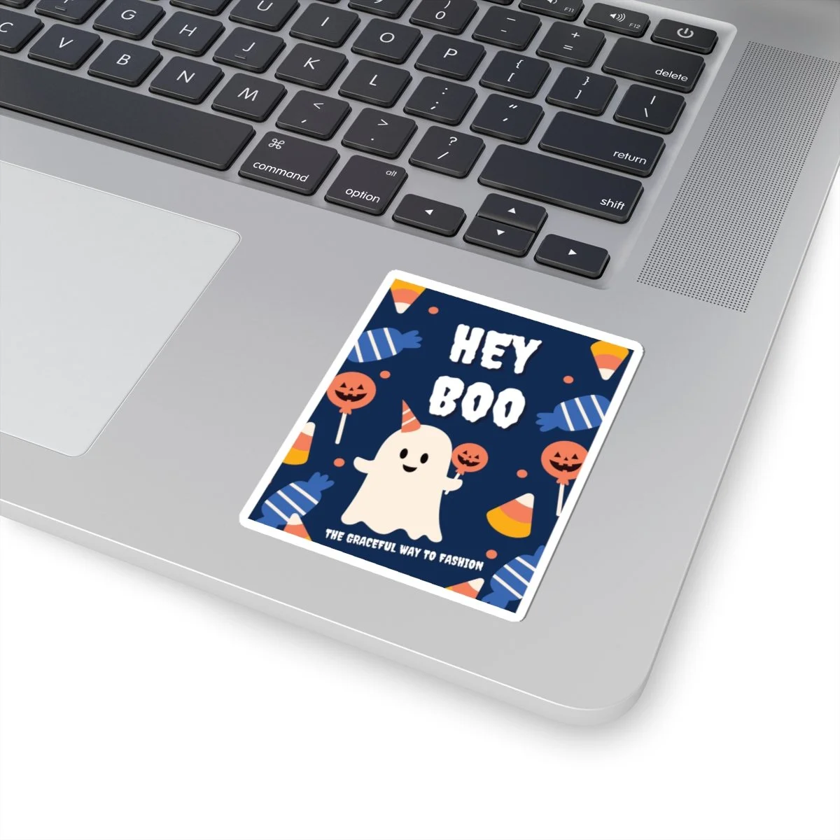 Hey Boo Halloween Kiss-Cut Stickers, Cute Ghost Design, Fall Decor, Trick or Treat Party Favors, Laptop Décor, Spooky Gifts