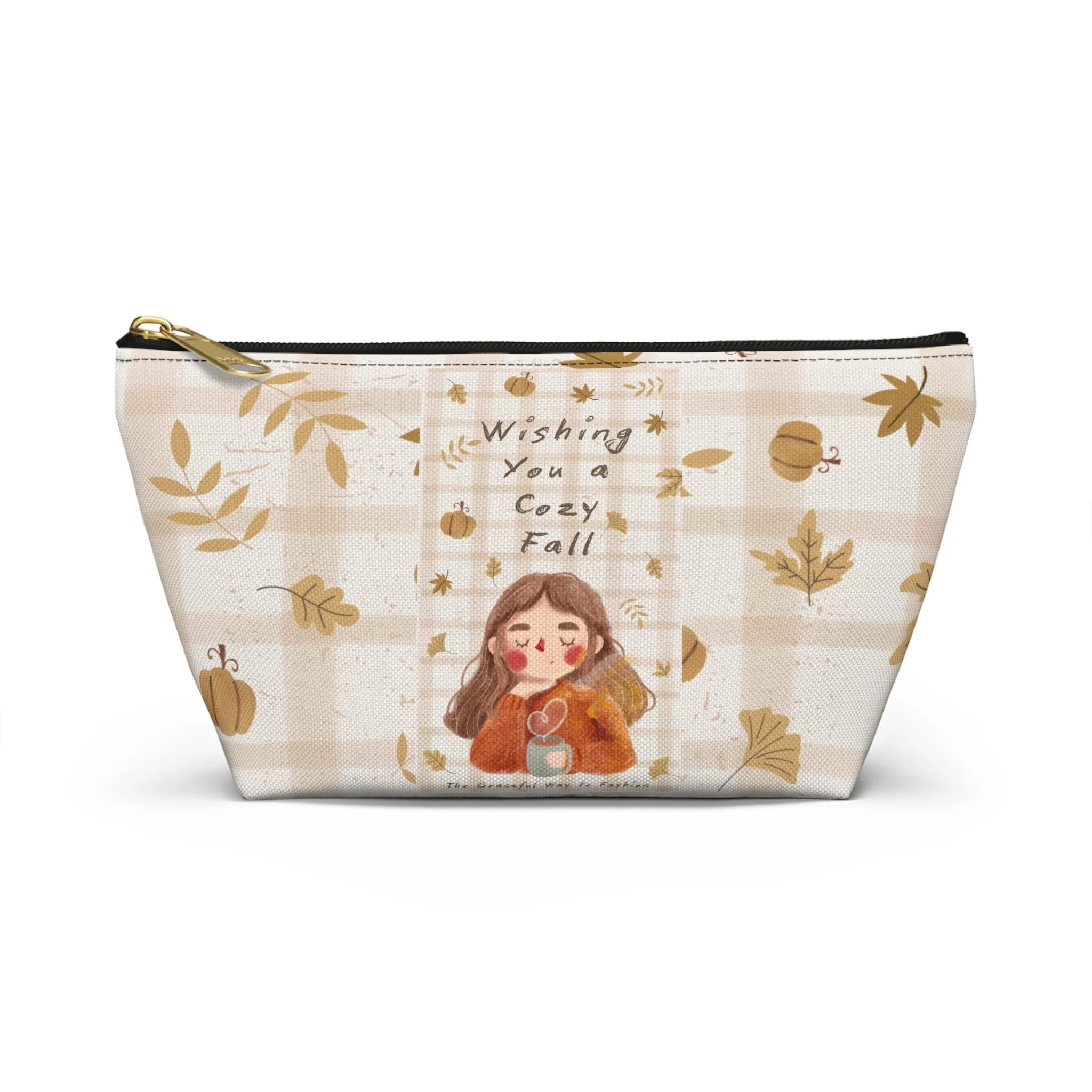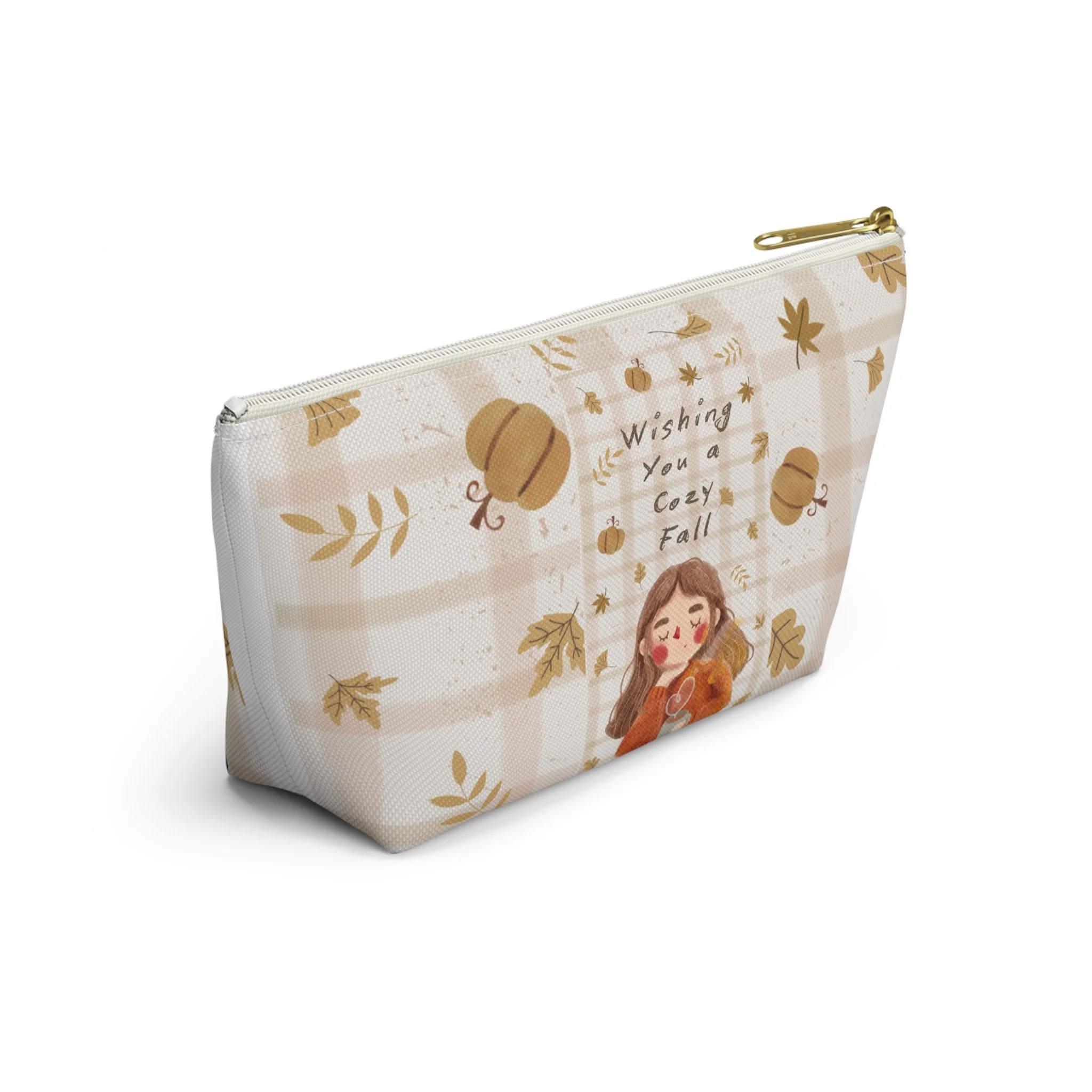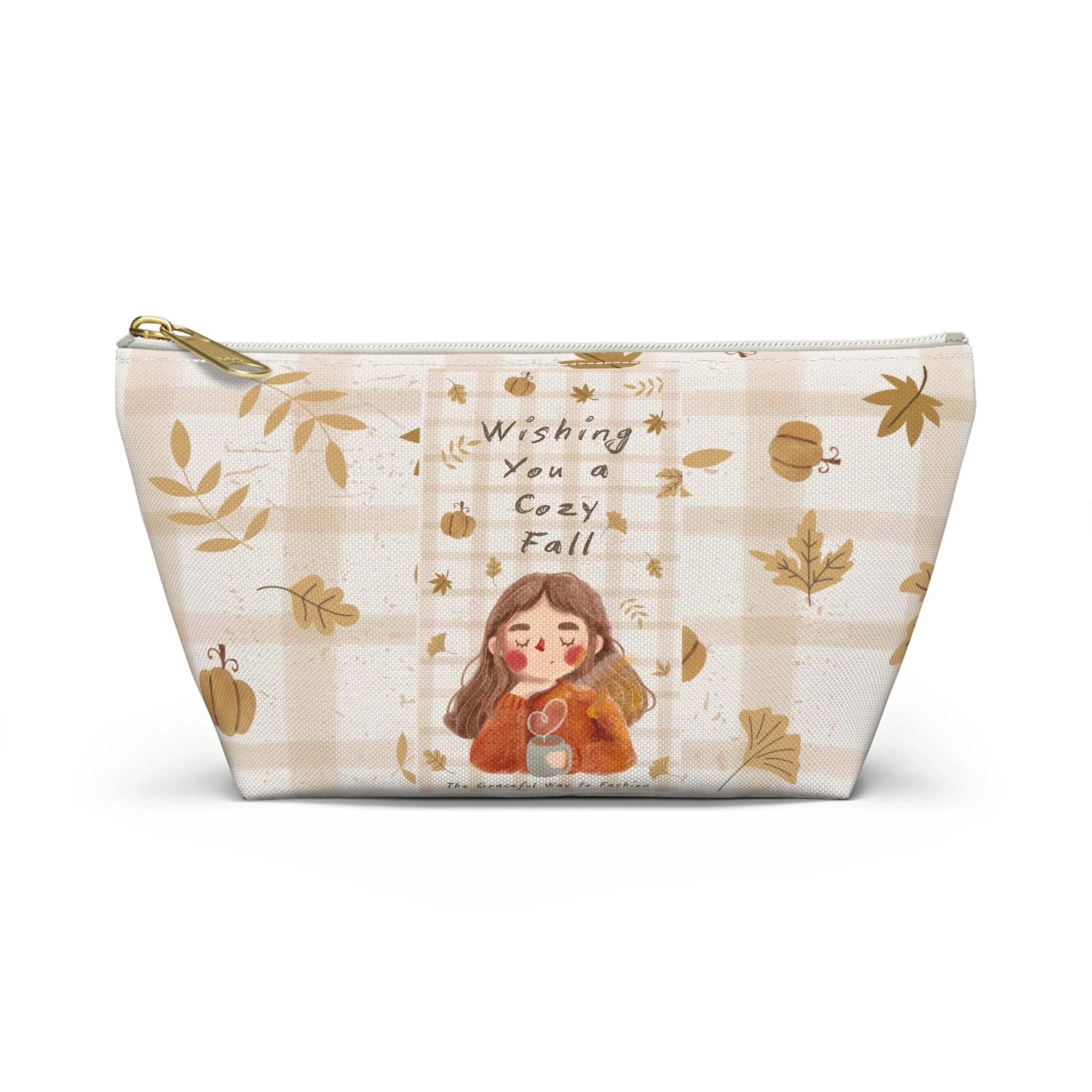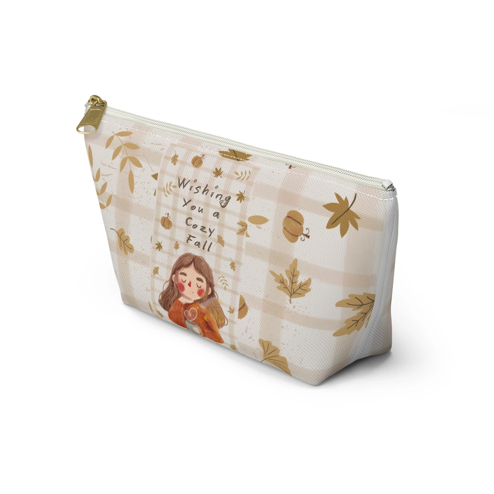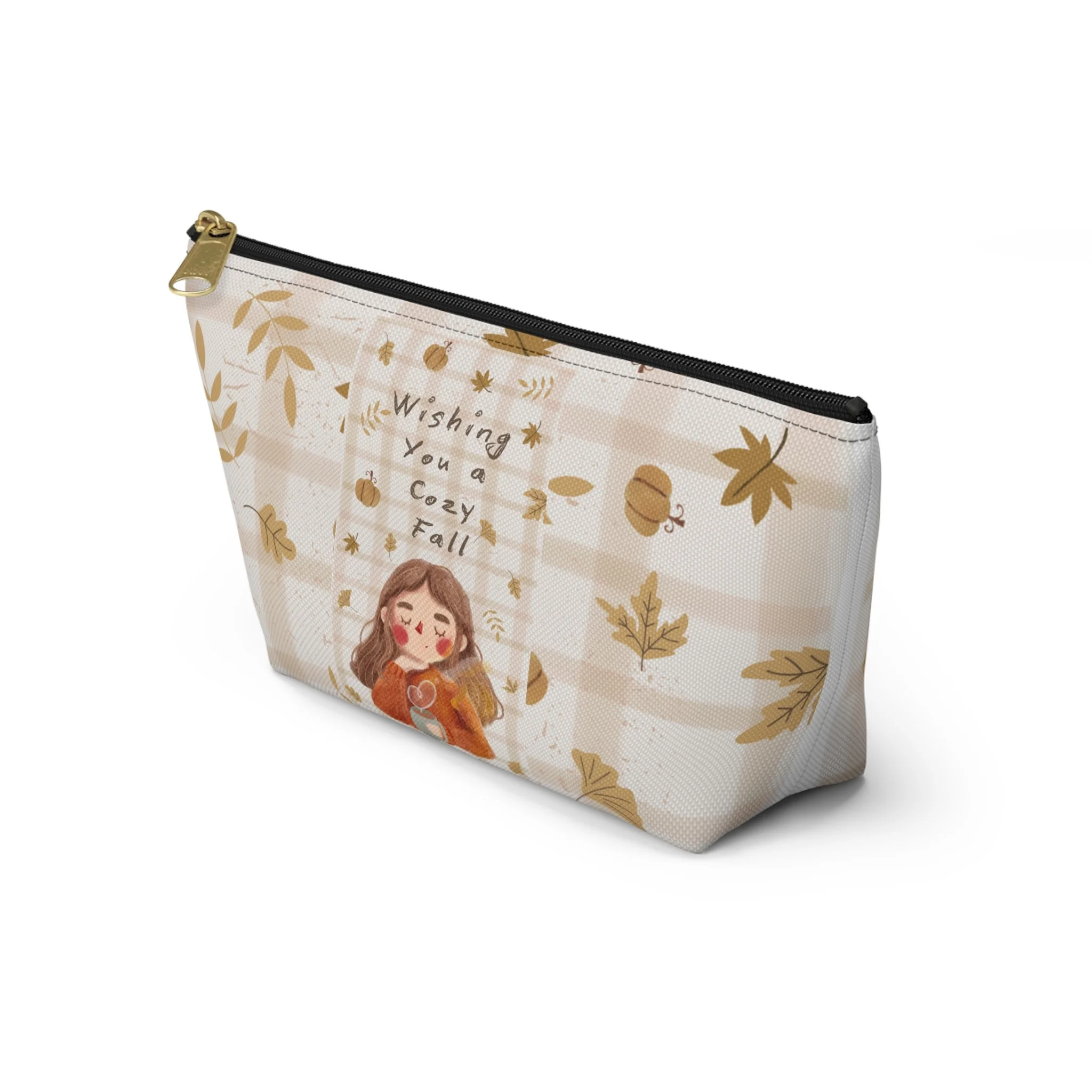 Cozy Fall Accessory Pouch, Fall Makeup Bag, Autumn Travel Organizer, Seasonal Gift, Cute Storage Bag, Wishing You a Cozy Fall