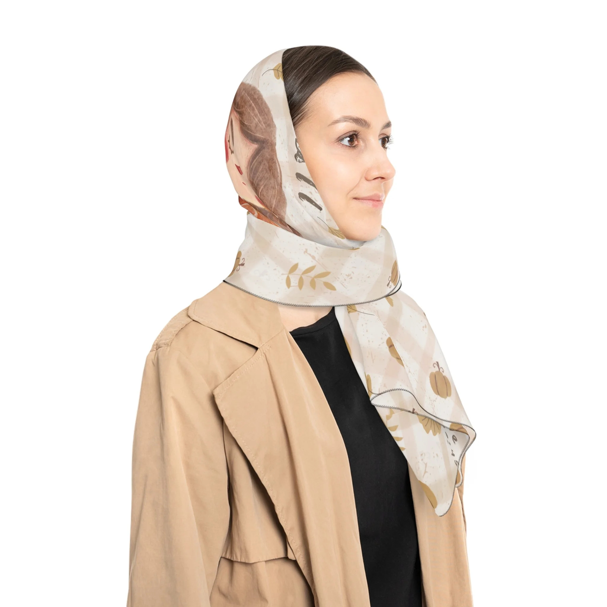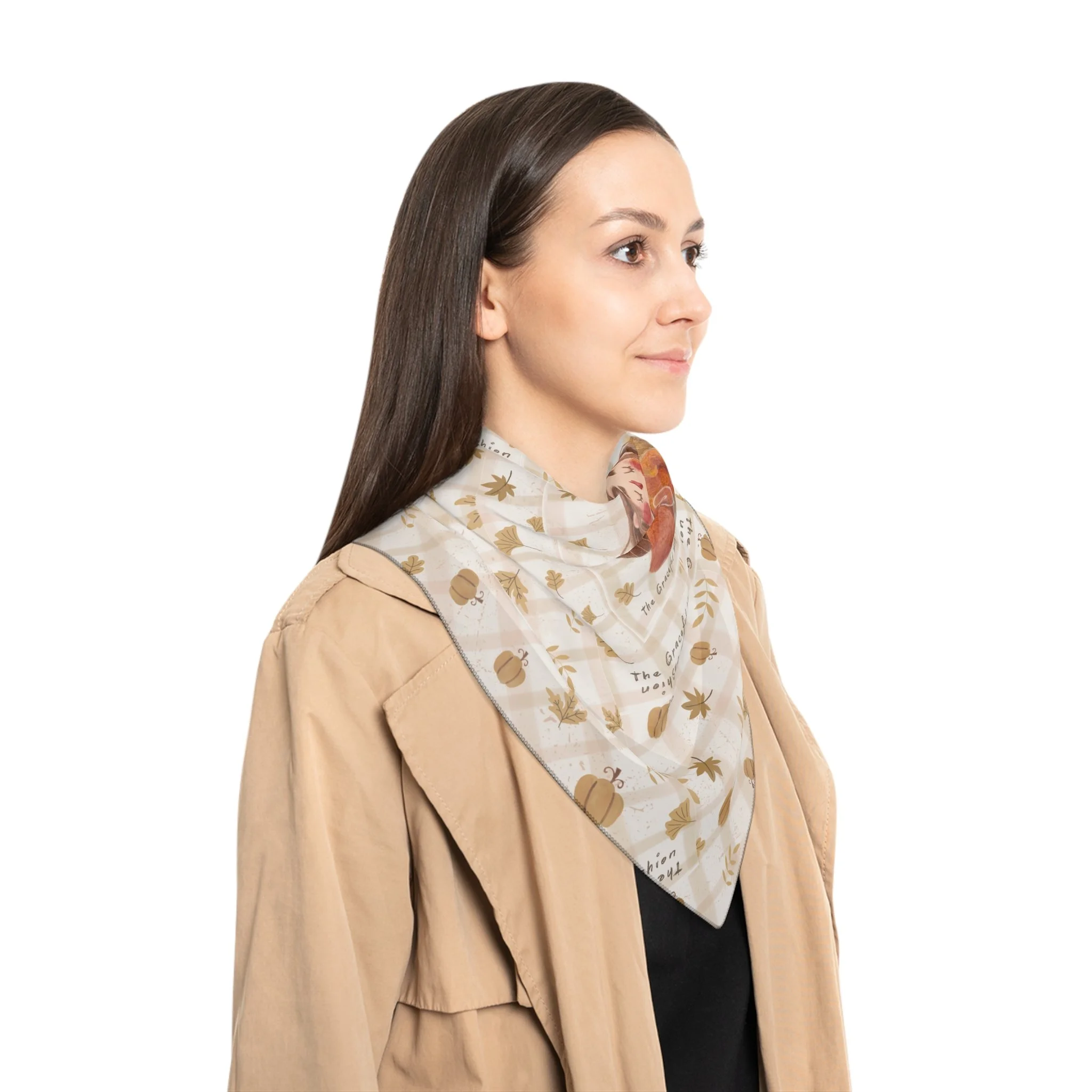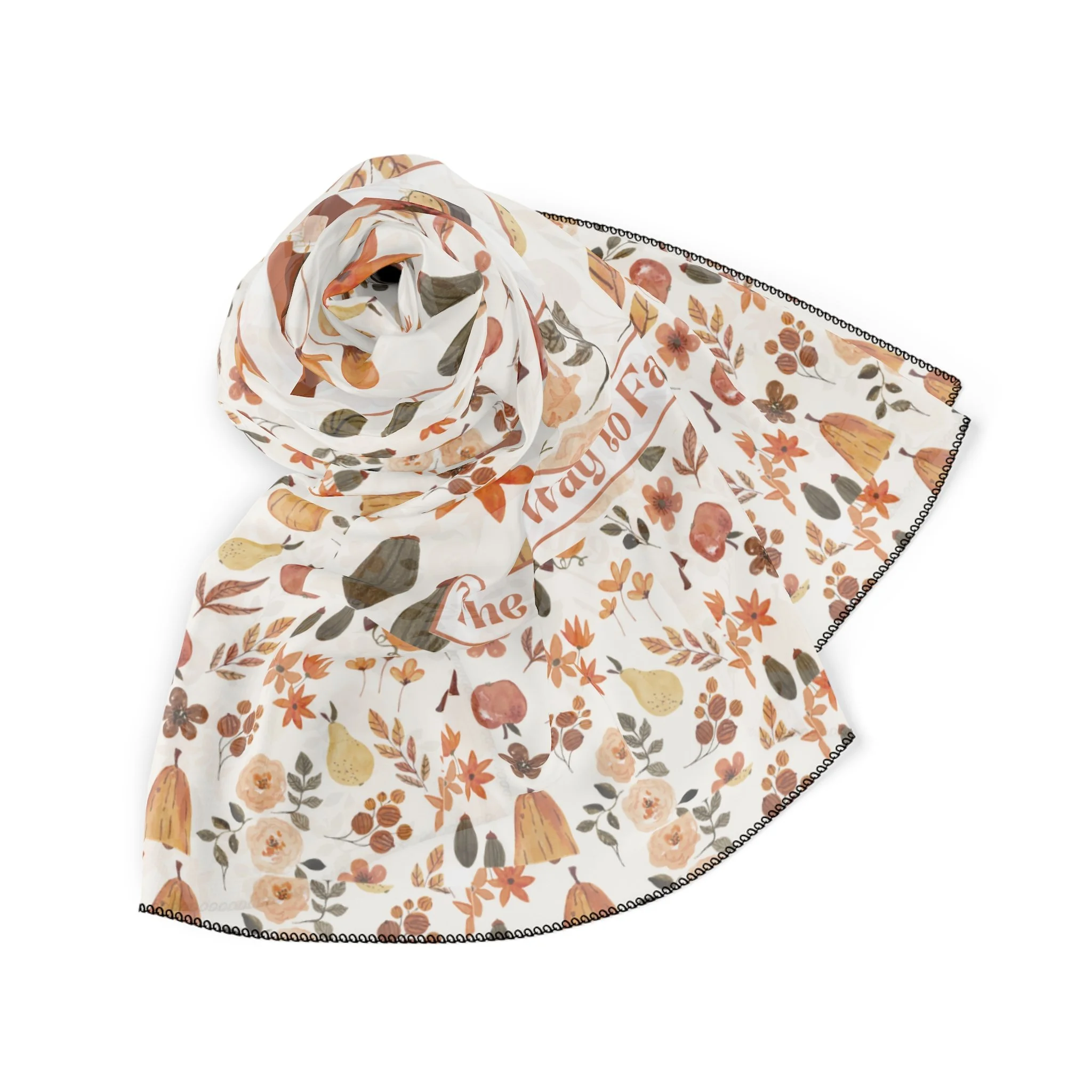 Autumn-Inspired Travel Poly Scarf, Cozy Fall Accessories, Seasonal Fashion, Warm Layering Piece, Gift for Her, Scarf with Inspirational Quote