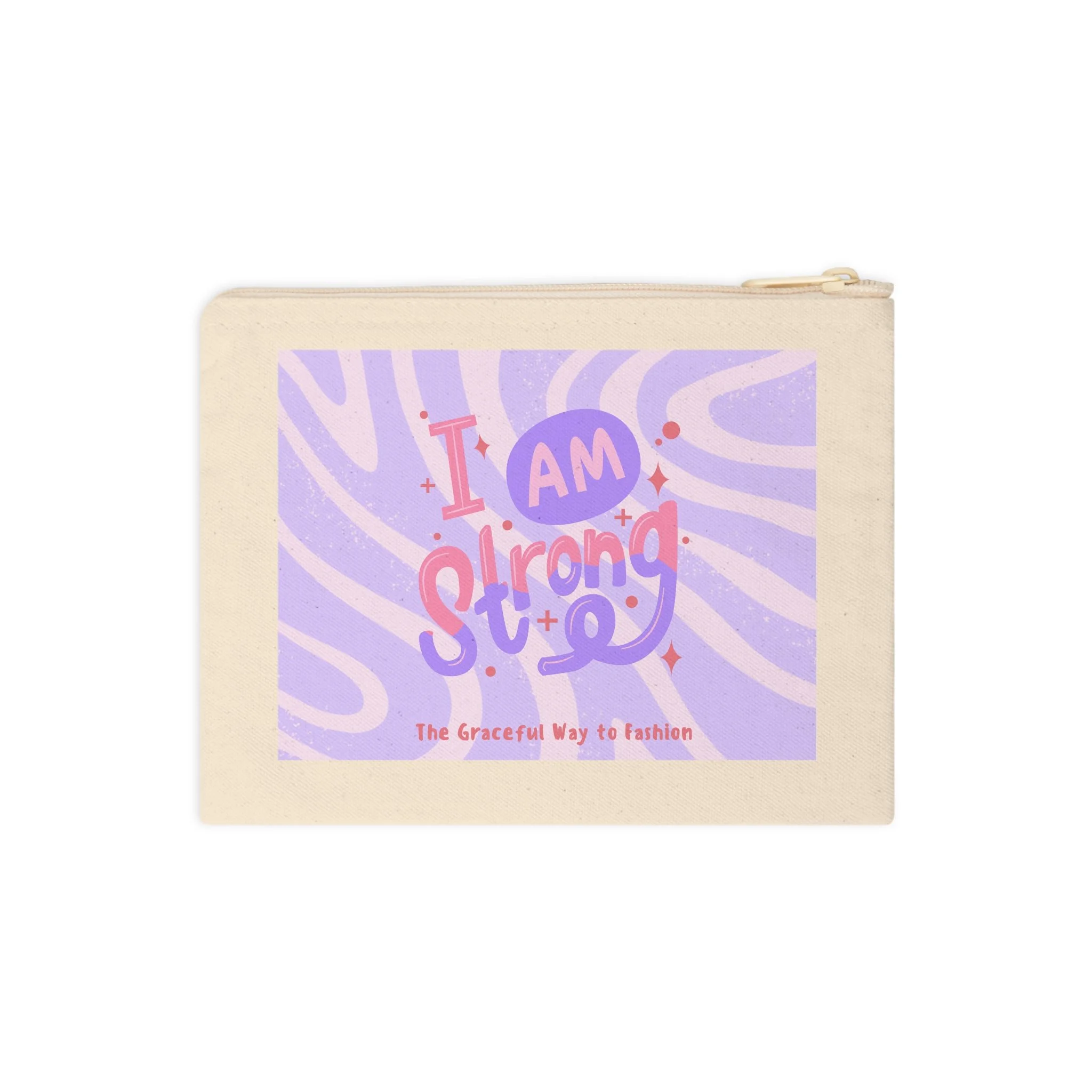 Empowering Zipper Travel Pouch - I AM Strong, Motivational Accessory, Essential for Travel, Makeup, & Organization, Perfect Gift