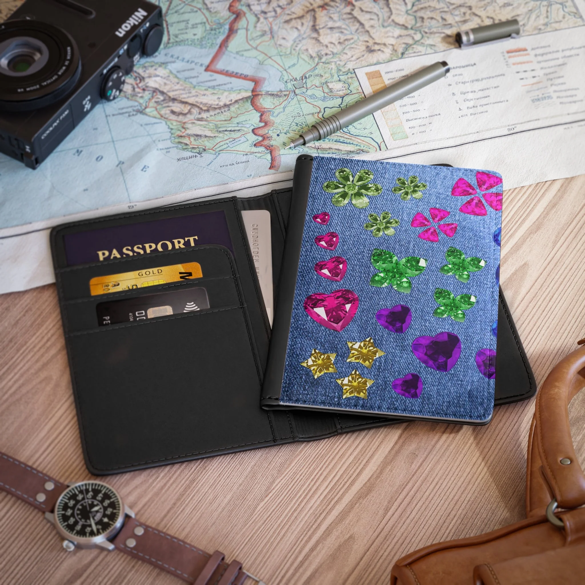 Denim Sparkles Passport Cover, Gift for Travelers, Couples’ Travel Accessory, Valentine’s Day Gift, Personalized Travel Wallet